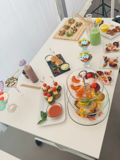 实践环节中,一场汇聚全球 60 个国家合作伙伴的限时美食创新挑战赛热烈开展。在 CEAMSA 专业技术团队的带领与协同下,大家充分发挥技术吸收能力与创新思维,将胶体应用技术与美食创作深度结合:用果胶做镜面、卡拉胶做凝胶、柑橘纤维提升口感。